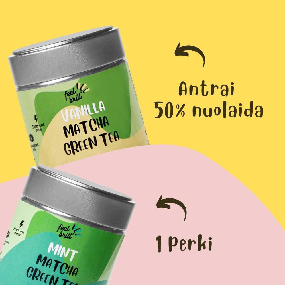LImituotą laiką, kas antra matcha arbata, už puse kainos! Į krepšelį įsidėkite bent 2 jūsų pasirinktas matcha arbatas ir naudokite kodą "AntraUzPuse".